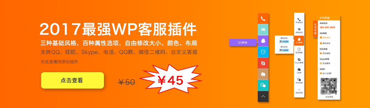 QQ旺旺Skype微信电话二维码QQ群微博等自定义客服WordPress插件发布